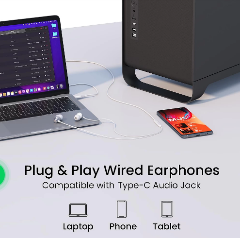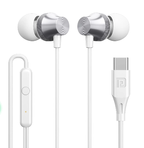 Portronics Conch Beat C in Ear Wired Earphones with Mic, Type C Audio Jack, 10mm Driver, 1.2m TPE Anti Tangle Wire, in line Mic Controls, Powerful Audio, Metal Alloy Body, Wide Compatibility - Silver
